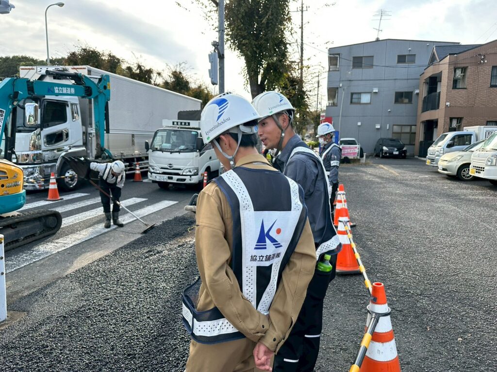 彼は多摩工科高校で行われたインターロッキングブロック工事に参加して舗装に興味を持ち、協立への希望を出してくれました