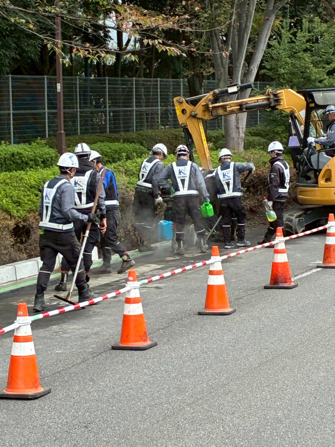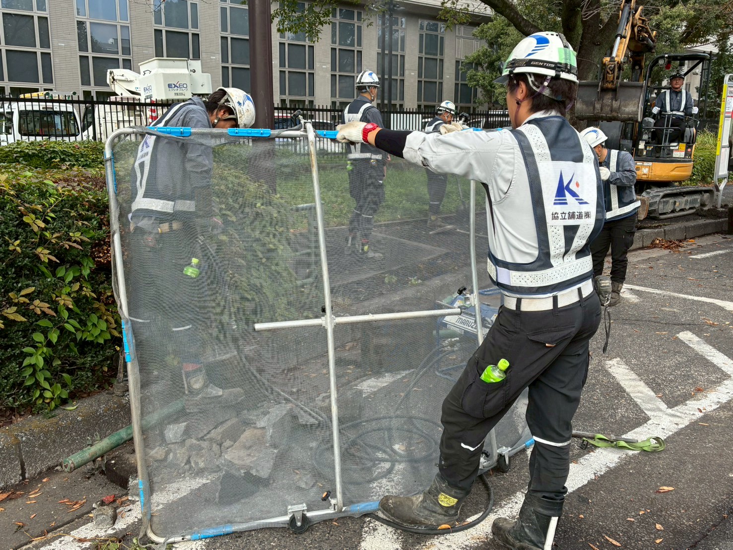 街路樹の根が張り出してきて根を切りながらの施工していかなければなりません